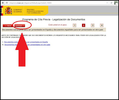Agora temos a opção de expandir a informação sobre a legalização de documentos. Clicamos outra vez em “Continuar”.